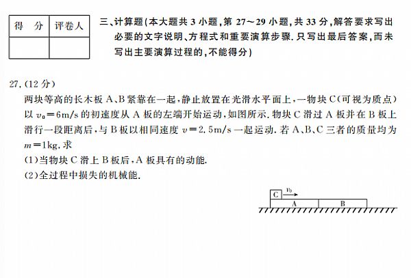 2020年成人高考高起点《物理化学综合》真题及答案